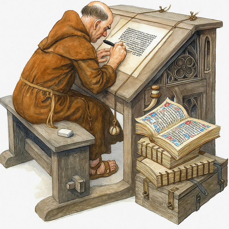 In the ancient world, texts were copied by hand onto materials that were both costly and short-lived. Scrolls decayed, were burned, or were reverently buried once they became too worn to read. Copyists worked in rooms designed for light, aware that the loss or alteration of a single letter could change meaning. Some laboured with exemplary care and devotion; others introduced errors or made changes of their own, whether through fatigue, misunderstanding, or conviction. The history of transmission is therefore not only a record of fidelity but also of interpretation—and at times, of control. As Umberto Eco’s The Name of the Rose reminds us, even the preservation of knowledge can become an instrument of power, and the decision of what to copy or conceal is never without consequence.