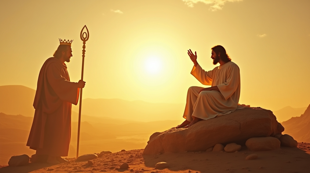 And before beginning his ministry, he endured forty days in the wilderness — a time of deprivation, testing, and solitude — showing that the spiritual path begins not with obedience or conformity but with detachment from illusion. In that encounter, when tempted by worldly power and material comfort, he said, “Get thee behind me, Satan” (Luke 4:8), thus identifying the voice of temptation with the materialist world itself. For him, the adversary was not some external being but the spirit of worldly desire — the craving for mastery, status, and possession that blinds the soul to God.